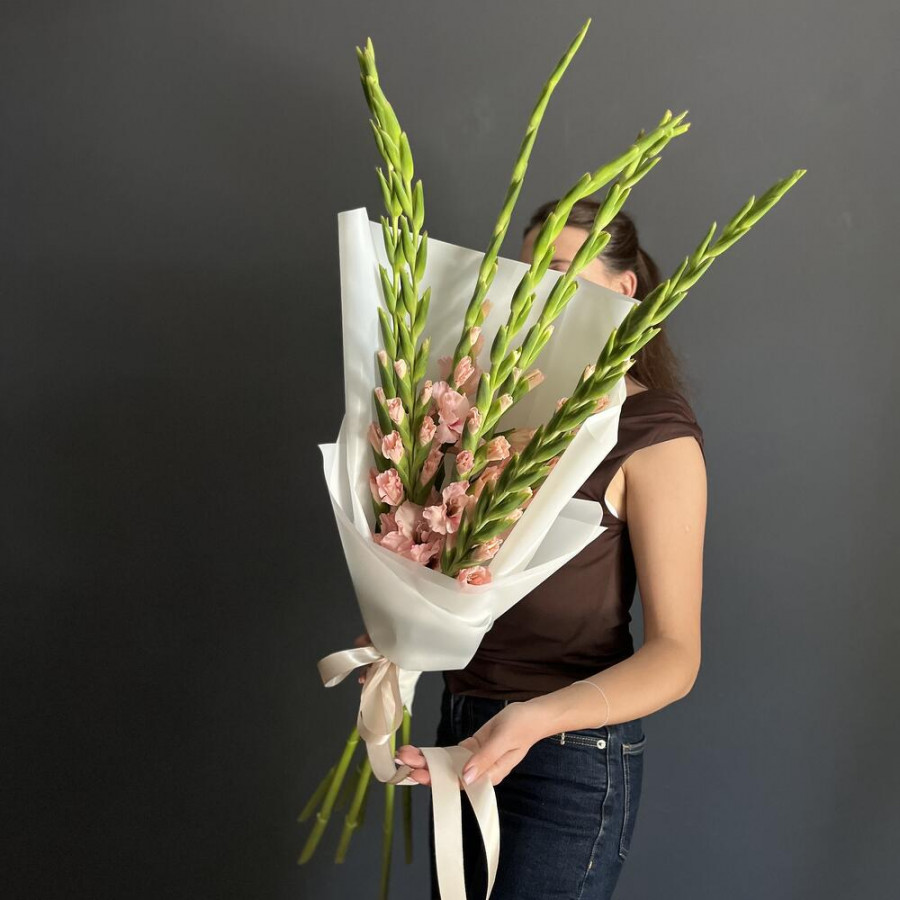 Букет из гладиолусов и эустомы