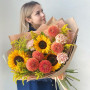 Букет из подсолнухов и георгин в Новороссийске
